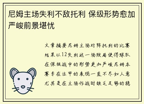 文章摘要:尼姆主场对阵托利的比赛,结果以...