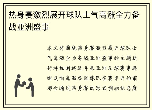本文将围绕“热身赛激烈展开,球队士气高涨...