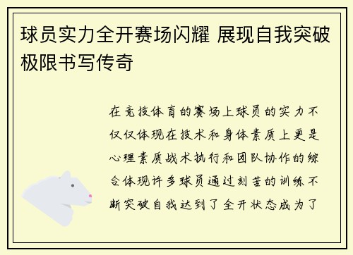 在竞技体育的赛场上,球员的实力不仅仅体现...