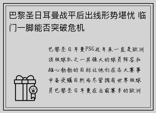 巴黎圣日耳曼(PSG)近年来一直是欧洲顶...
