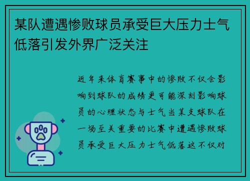 近年来,体育赛事中的惨败不仅会影响到球队...